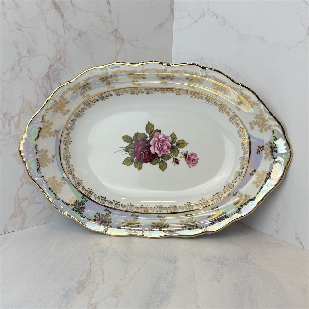 Блюдо овальное 35,5 см глубокое, Роза перламутровая, Carlsbad