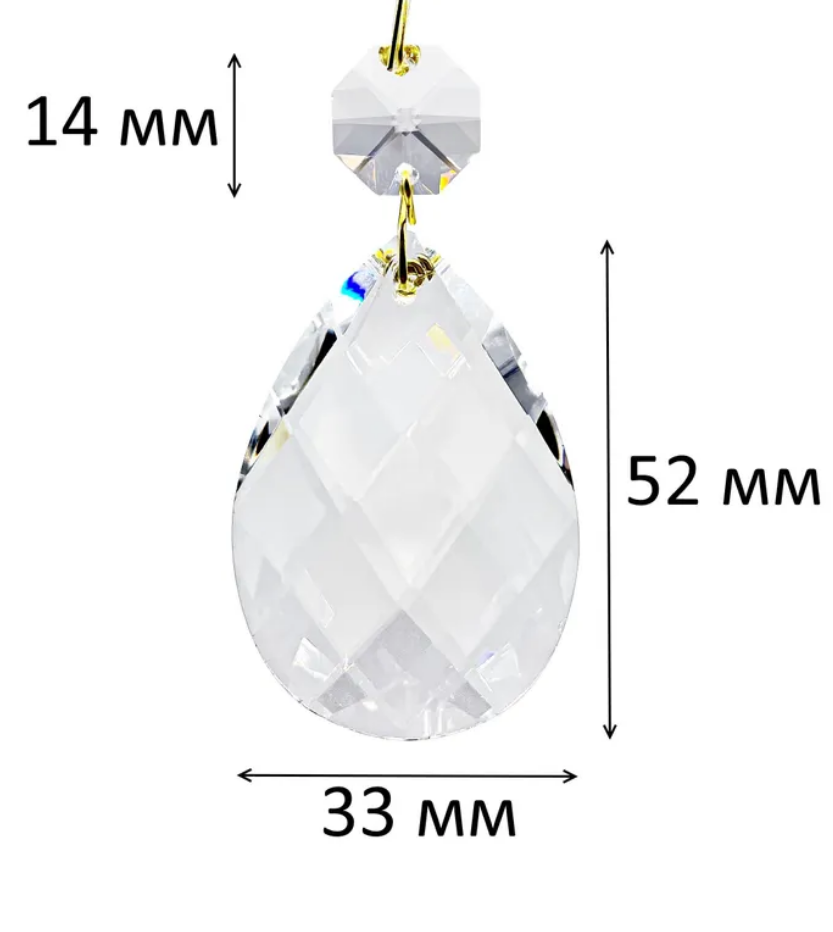 Подвеска для люстры типа "Миндаль" имеет вид гранёного камня. Она создана из хрусталя и является оригинальной частью от люстры чешского производителя "Bydzov".