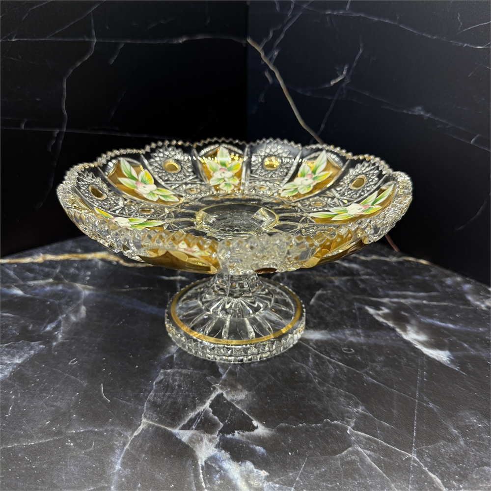 Конфетница на ножке плоская 19 см (8525) хрусталь с лепкой