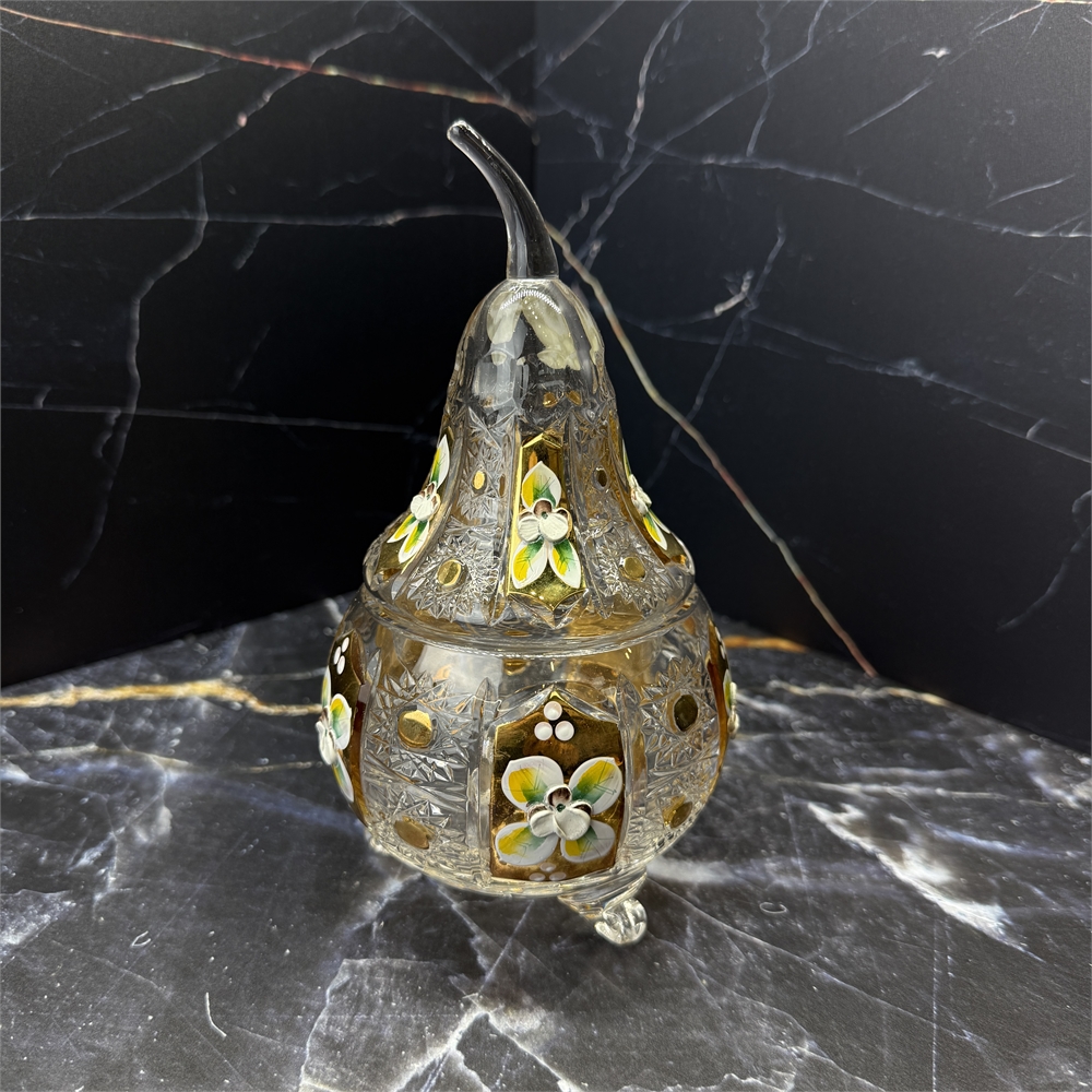 Конфетница с крышкой Груша 20 см, хрусталь с лепкой