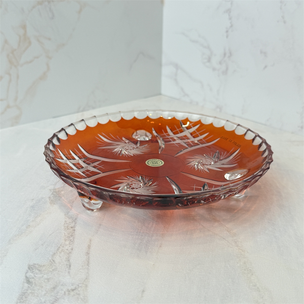 Конфетница тарелка триножка 17 см оранжевая цветной кристаллит