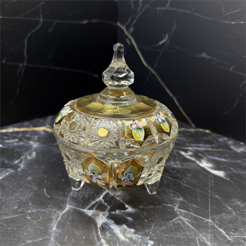 Сахарница с крышкой 14 см на трёх ножках (3033) хрусталь с лепкой
